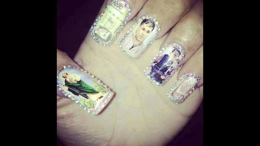 Estas mujeres ostentan además pistolas bañadas en oro y brillantes, incluso se hacen manicure con imágenes de los capos el «Chapo» Guzmán, Caballeros Templarios, etc.